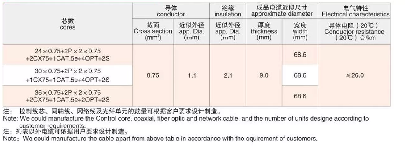 Note: We could manufacture the cable apart from above tabla in accordance with the equiremant of customers.